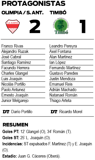 El local aprovechó su eficacia y se quedó con la ida. Ahora, la final viaja a Jardín América, donde el domingo 8 Timbó buscará torcer la historia y Olimpia ratificar lo conseguido. Se busca campeón.