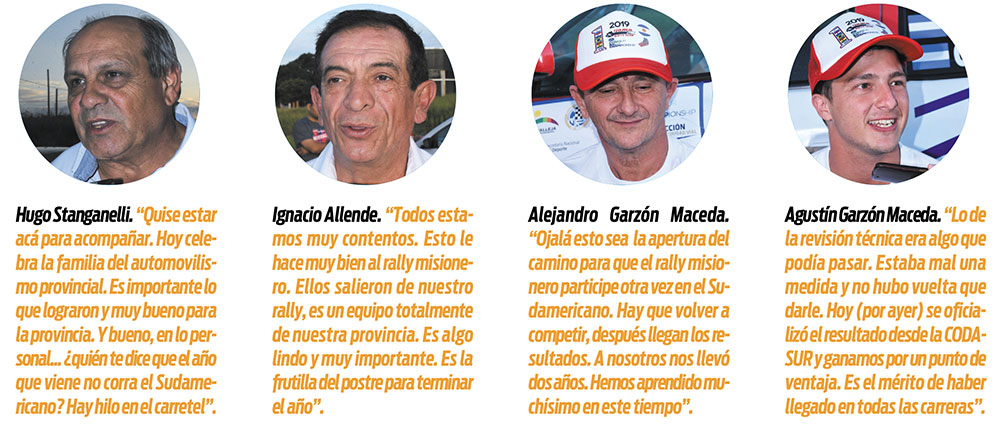 “Quise estar acá para acompañarlos. Realmente es muy bueno lo que hicieron en el Sudamericano. Por eso creo que estas cosas hay que agradecer estando acá, acompañando y festejando con ellos. Hoy celebra la familia del automovilismo provincial”, le dijo a EL DEPOR un referente del volante misionero, Hugo Stanganelli, quien no se quiso perder la llegada de los campeones.