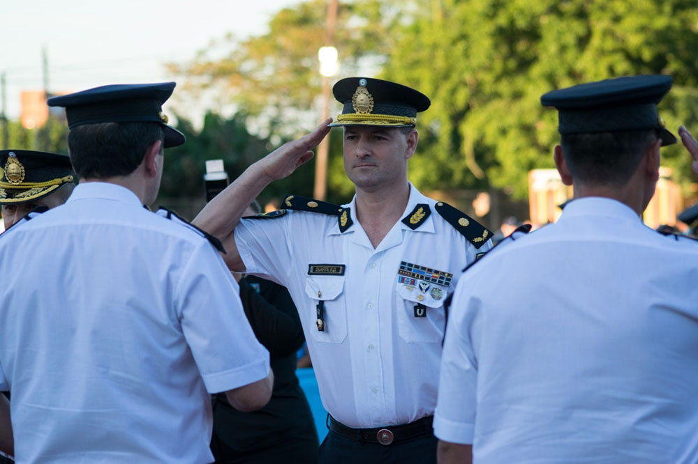 La ceremonia fue presidida por el subsecretario de Seguridad y Justicia, Ariel Marinoni, quien estuvo acompañado por el jefe de Policía, Crio. Gral. José Mazur; el subjefe, Crio. Gral. José Roberto López; la directora del Servicio Penitenciario, Alc. Gral. Nilda Estela Correa y el subdirector, Alc. Gral. Julio César Zarza.