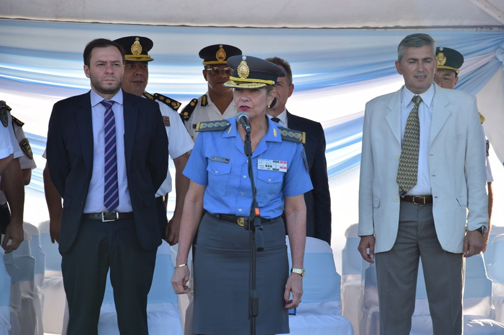 La ceremonia fue presidida por el subsecretario de Seguridad y Justicia, Ariel Marinoni, quien estuvo acompañado por el jefe de Policía, Crio. Gral. José Mazur; el subjefe, Crio. Gral. José Roberto López; la directora del Servicio Penitenciario, Alc. Gral. Nilda Estela Correa y el subdirector, Alc. Gral. Julio César Zarza.