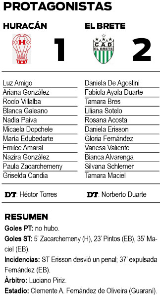 A los cuatro minutos de la segunda etapa, el referí Luciano Piriz marcó penal para El Brete y Daniela Erisson tomó la posta, pero el tiro se fue por arriba del travesaño. Para colmo, al minuto, las Globitas se pusieron en ventaja a través de Paula Zacarchemeny. Con el 1-0, la serie estaba empatada.