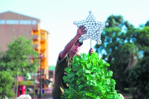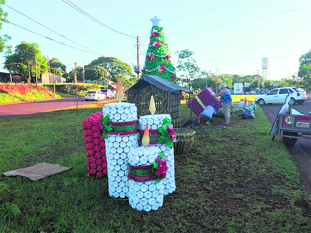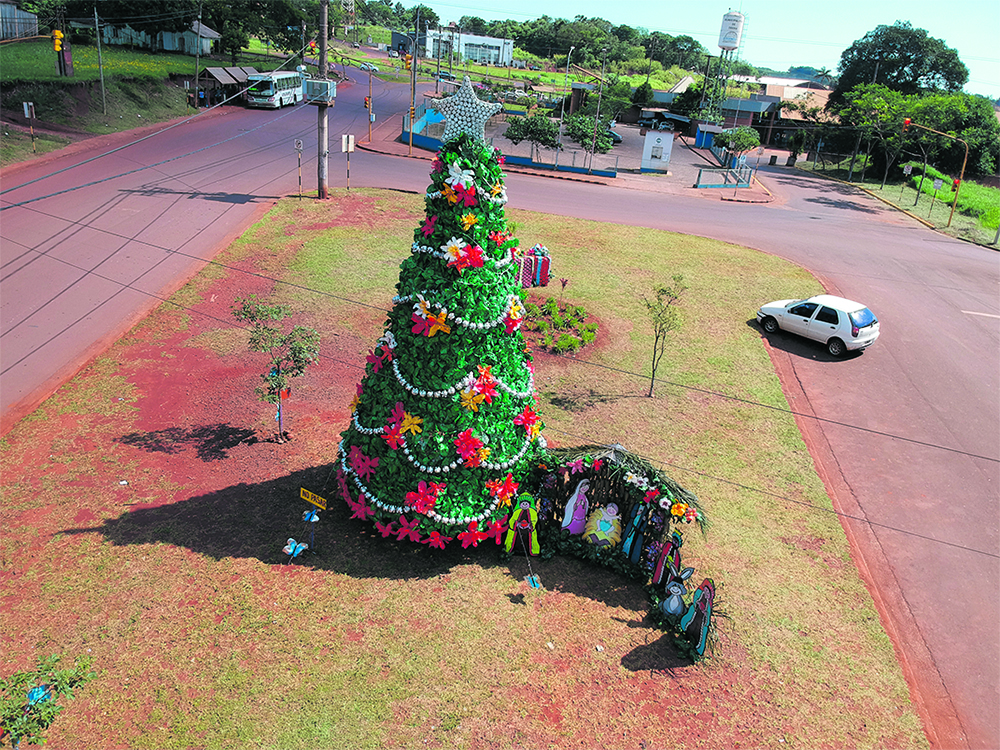 La Municipalidad de Oberá colaboró con un mástil de seis metros y “nos queríamos morir porque no sabíamos cómo hacer para decorarlo, porque era demasiado alto”, recordaron entre risas. Fue entonces que el diseñador industrial Matías Rea, diseñó el árbol en diez partes, como un rompecabezas. “Fuimos decorando cada parte, que después se fue uniendo” y se levantó con la grúa de la CELO. También se donaron hierros que resultaron insuficientes para lo que pretendían. Entonces las mujeres se dedicaron a la venta de pollos, empanadas, rifas, y con lo recaudado fueron comprando alambres, mallas pajareras, pinturas. A la par, juntaron abundantes botellas, y comenzaron a “salir” los árboles. El primero, instalado en la plaza, tiene seis metros y para decorarlo se utilizaron unas 3.500 botellas. Para ellas, “es el más lindo por el momento”.