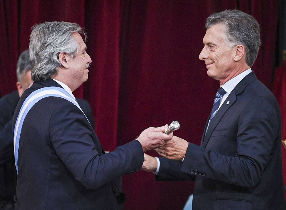 Luego de la jura, Macri ingresó al recinto para cumplir con la entrega de los símbolos, y tuvo un seco saludo con la expresidenta, tras lo cual entregó el bastón y la banda, atributos de mando. “Suerte”, le deseó Macri a Fernández al darle un abrazo tras colocarle la banda presidencial en el recinto de la Cámara de Diputados.