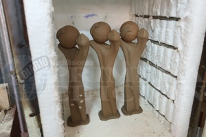 Luego, es el turno de la preparación de la barbotina “que es la arcilla líquida con que se confecciona, se van cargando los moldes y después de esperar un tiempo a que tomen cierto espesor, se vuelca el excedente”, dijo. Continuando con el proceso, “una vez que se ensambla la esfera con el cuerpo y el cartelito, que se hace a parte, se deja secar y va al horno en la primer quema que se llama bizcochado”.