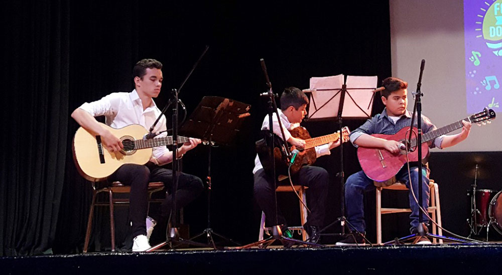 En el último tramo de la noche actuará el Ensamble de guitarras del Estudio musical integrado por nueve alumnos que interpretarán Misionerita (Galopa), chotis, valseado y carnavalito con la percusión de Carlos Chemes, Yuliano Bruno y Christian Pedrozo.