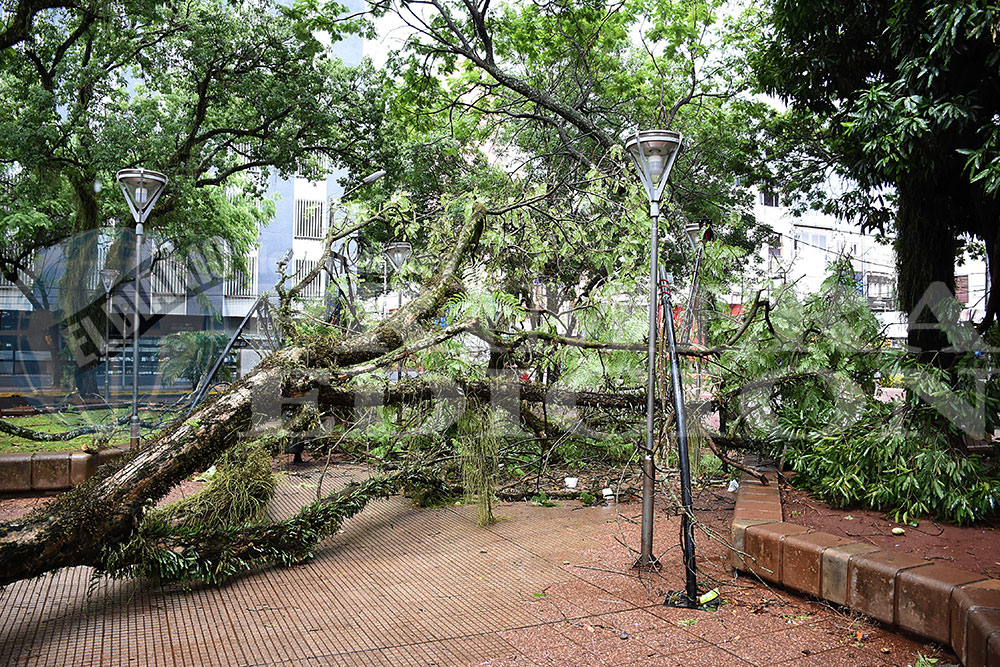 Lo cierto es que en las aproximadamente dos horas de mayor intensidad de la tormenta fueron varios los árboles, gajos y postes del tendido eléctrico afectados, lo cual dejó sin luz a amplias franjas de Posadas, Garupá y Candelaria.