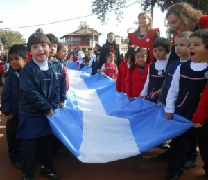 En el establecimiento, situado a unas pocas cuadras de su domicilio, comenzó los ensayos con sus pares y con la maestra, y salieron perfecto. Como en casa no había bandera, un palo de escoba sirvió de guía para saber cómo pararse, cómo juntar las piernas y mirar hacia el frente, porque “él estaba tan enamorado de su bandera que no la dejaba de mirar y se agachaba mucho”.