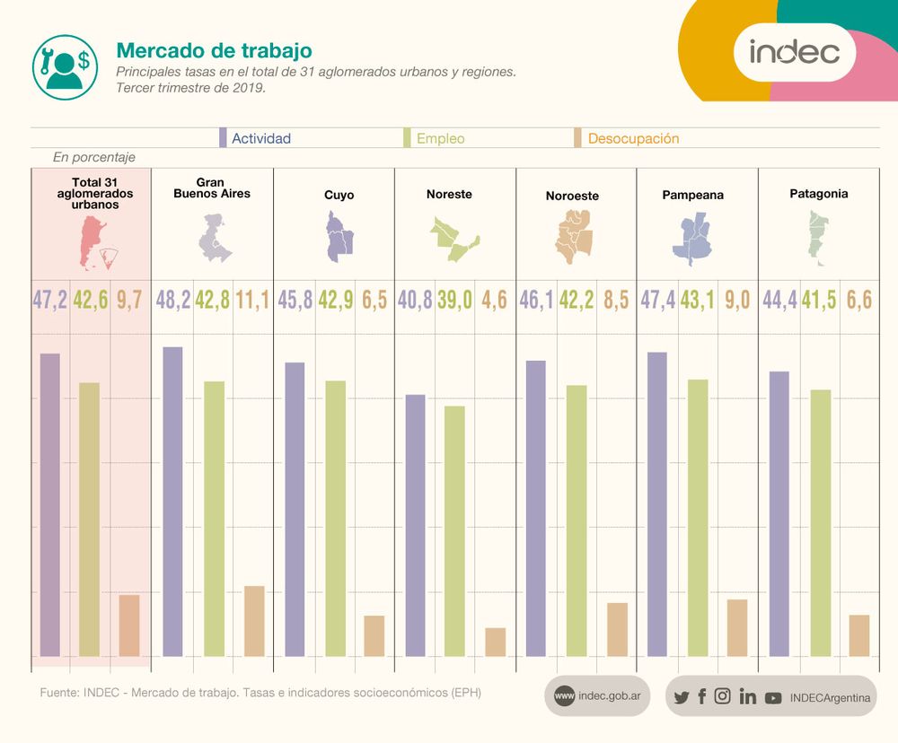 La desocupación subió en el tercer trimestre del año al 9,7% y creció 0,7 puntos porcentuales respecto de igual período del 2018, informó hoy el INDEC.