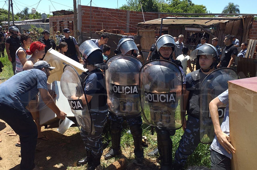 Corridas, piedras, golpes, agua y fuego. Elementos de un descomunal desorden que incluyó a varias personas que trataban de apagar además el incendio de la vivienda, defender a la mujer y sus hijos y otros a sacar literalmente del barrio a los obreros.
