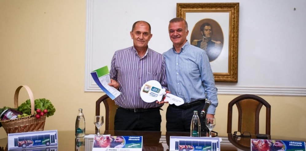 El vicegobernador provincial, Carlos Arce, hizo entrega este lunes de un colectivo Mercedes Benz 730 OF 1417 al Municipio de El Soberbio, que beneficiará a 13 familias de agricultores que concurren a distintas ferias de Posadas a comercializar su producción.