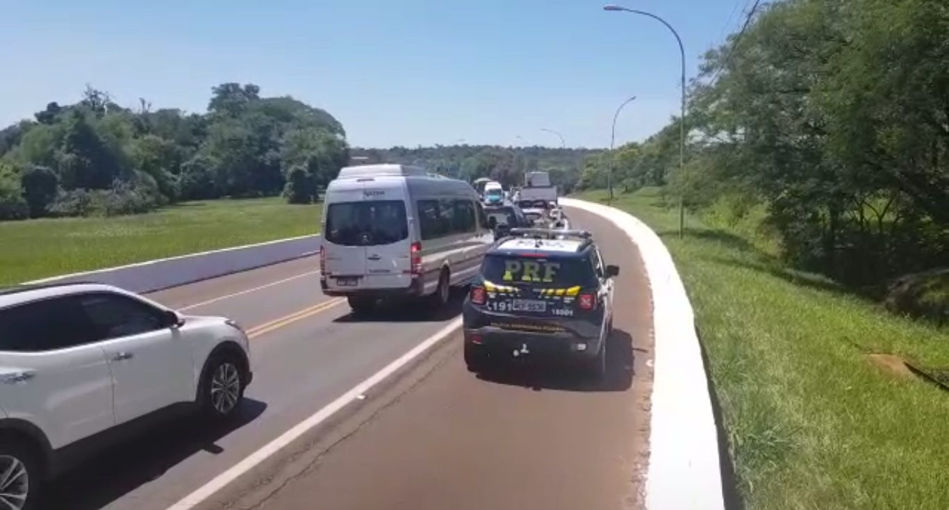 Extensas filas de autos, colectivos y camiones se pudo observar este fin de semana en el puente internacional Tancredo Neves, desde Foz do Iguaçu (Brasil) hacia la ciudad de las Cataratas en el lado argentino.