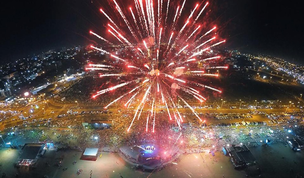 El gran espectáculo comenzó a la medianoche, con el espectáculo de fuegos artificiales cargadas de buenos deseos, dando así bienvenida al 2020.