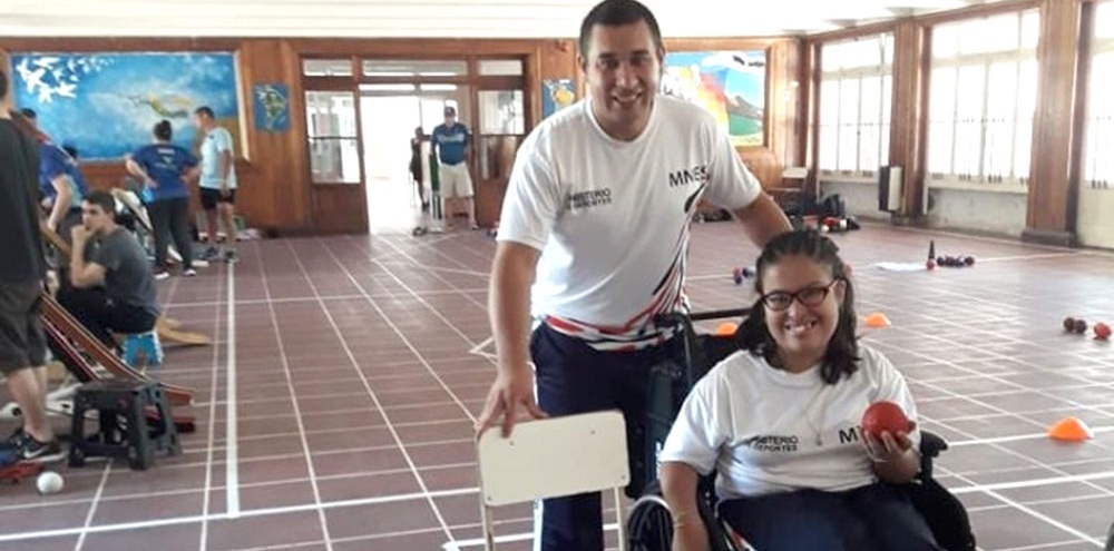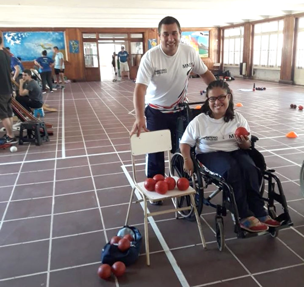 Allí se encontró con el profe Matías Quiroz, director del CEFE, y juntos comenzaron a trabajar con diferentes actividades adaptadas, primero con lanzamiento de bala y luego entraron lentamente en el mundo de la boccia.