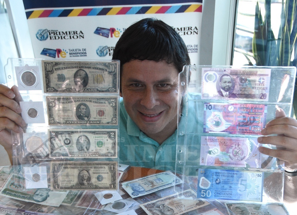 Rafael Galvan tiene 42 años y desde los diez colecciona monedas y billetes. Actualmente, con su colección recorre más de 200 países. “El billete más antiguo que tengo pertenece al Imperio Austrohúngaro”, precisó a PRIMERA EDICIÓN.