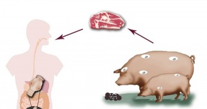 La infección está ocasionada por el parásito Taenia solium, también conocido como tenia del cerdo. Vive en el intestino delgado de los seres humanos a partir de la ingestión de carne de cerdo infectada y mal cocinada. Sin embargo, no es la única vía.