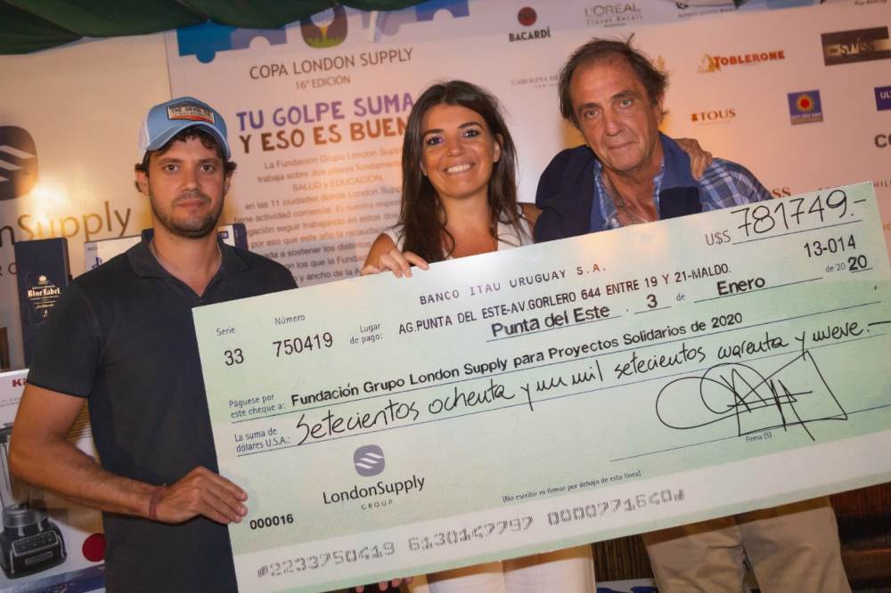 Como cada comienzo de año, el 3 de enero, el holding empresario argentino, London Supply Group, celebró en el Club del Lago Golf de Punta del Este el tradicional torneo a beneficio Copa London Supply. Este especial encuentro, que en su décimo sexta edición reunió a amantes del golf con el fin de participar en un competitivo evento y a la vez colaborar con una buena causa, logró recaudar la impresionante cifra de U$s 781.749 dólares; que sumados a la espontánea subasta de un premio cedido por un participante, alcanzó el número final de U$s 782.149 dólares. Se trata de más de 47 millones de pesos argentinos que serán destinados a diversos programas que lleva adelante la Fundación del grupo empresario.