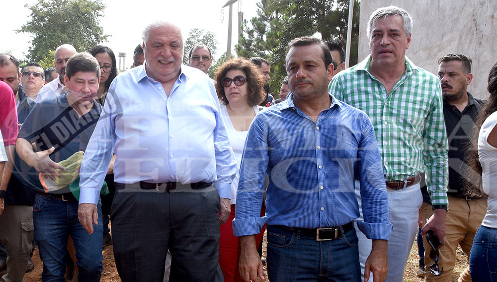 Bajo un calor sofocante y una humedad que no perdonó a nadie, el ministro de Salud de la Nación, Ginés González García junto al gobernador Oscar Herrera Aguad, el vicegobernador Carlos Arce y el ministro de Salud Pública Oscar Alarcón, encabezaron las tareas de saneamiento para eliminar reservorios del vector del dengue en el barrio Bicentenario de esta localidad.