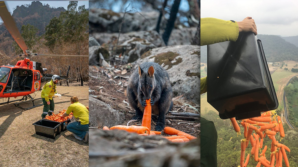 Lanzan zanahorias desde helicópteros en Australia para alimentar animales que resultaron afectados por los incendios forestales. pic.twitter.com/PiBWjwTlsA— TCS Noticias (@tcsnoticias) January 13, 2020
