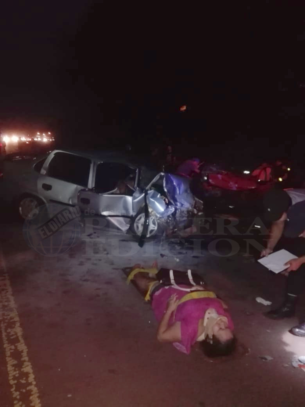 El Corsa era conducido por Sergio M. (47) e iba acompañado de cinco personas, tres mayores y dos menores de edad, oriundas de San Pedro. Mientras que el otro vehículo era manejado por Jorge C. (58), iba en compañía de cuatro personas, dos mayores más y dos menores.