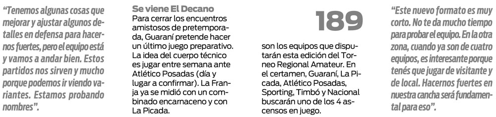 “Nos encontramos con un equipo de La Picada diez veces más rápido que nosotros. Durante esta pretemporada metimos dos turnos, venimos de trabajos duros y no es para justificar pero tenemos que aflojar los músculos todavía”, admitió el entrenador de La Franja.