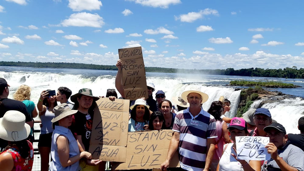 Pero, la diferencia, fue la protesta que llegó hasta las pasarelas del Parque Nacional, donde se sumaron turistas enojados por no tener energía en los hoteles.