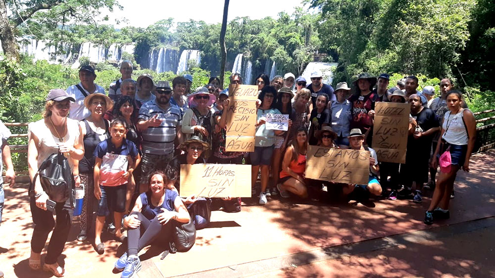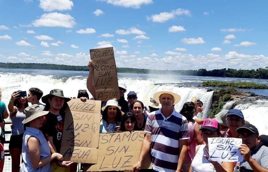Pero, la diferencia, fue la protesta que llegó hasta las pasarelas del Parque Nacional, donde se sumaron turistas enojados por no tener energía en los hoteles.