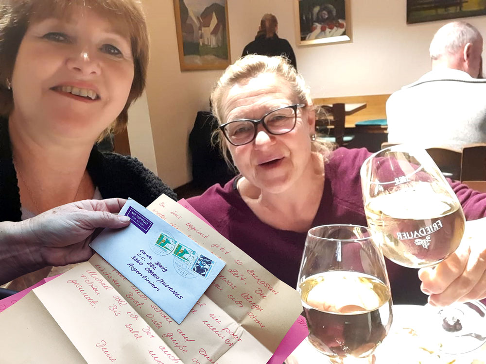 Se escribieron por primera vez en 1973, pero recién en enero de 2020 se vieron cara a cara en el crudo y frío invierno alemán, aunque el abrazo de estas dos amigas, hasta entonces conectadas simplemente por el papel, le dieron un calor como el que se siente por estos días en la tierra colorada.