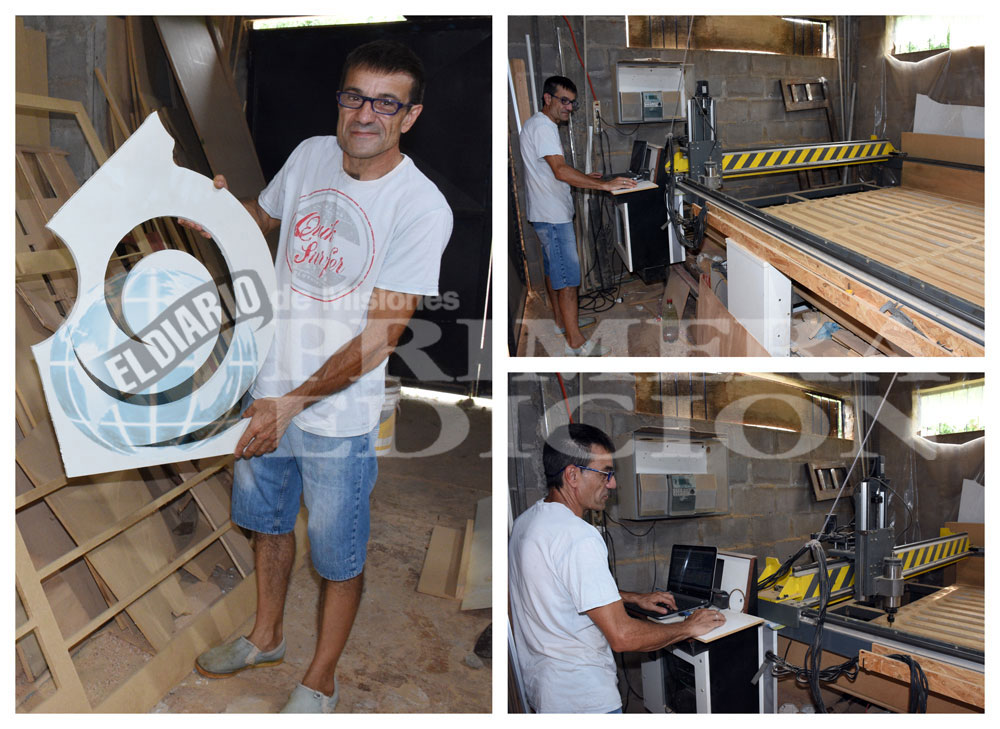 Una vez en suelo misionero, “intenté hacer un poco de herrería pero no es lo que yo buscaba. No es lo mismo trabajar en un barco, en una hélice, que hacer un portón. Y como me gustaba la carpintería, me dediqué hacer ese tipo de trabajos. Me fabriqué la máquina para hacer cortes, con computadora, y me dedico a eso (corte de placa, de letras, letra corpórea, dibujo)”.