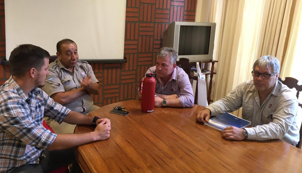 El intendente de la localidad de Puerto Rico, Carlos Koth y el director de Agro, Producción y Medio Ambiente, Jonatan Vega, se reunieron con los técnicos del Instituto Nacional de Tecnología Agropecuaria (INTA), Javier Correa y César Preussler, para delinear las bases de un trabajo articulado en el municipio, en el objetivo de crear una cuenca lechera.