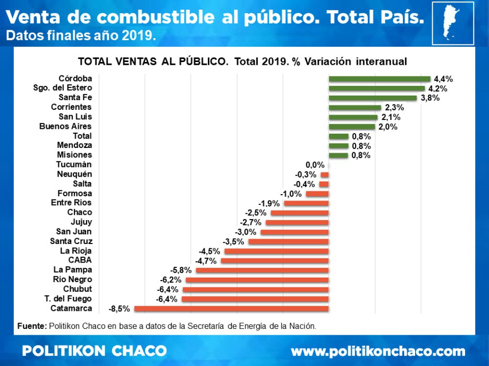 Misiones, al cosechar un 0,8% de suba, fue una de las 9 provincias que crecieron de forma interanual en relación al consumo total de ventas de combustibles al público, según remarcaron desde la consultora privada, Politikon Chaco, en base a datos de la Secretaría de Energía de la Nación. Los productos Premium presentaron los peores resultados.
