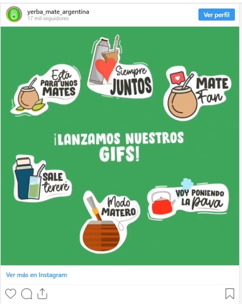 También están disponibles en Instagram los stickers materos, que pueden descargarse escribiendo “mate Argentina” o “INYM” en el buscador de gifs de Instagram.