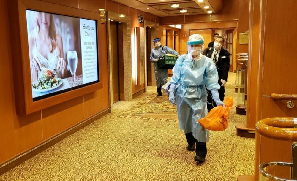 La empresa que administra los viajes del crucero informó que al menos hasta el 19 de febrero los pasajeros no podrán bajar de la embarcación. Los pasajeros tienen restringidas las salidas de los camarotes, todos con baño privado, y les acercan la comida en forma diaria.