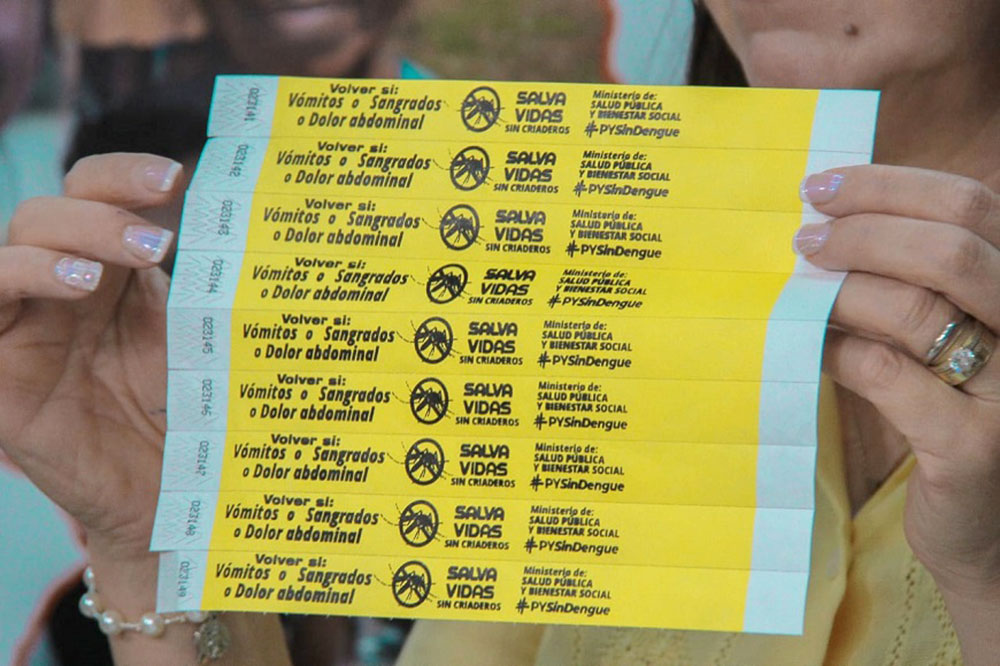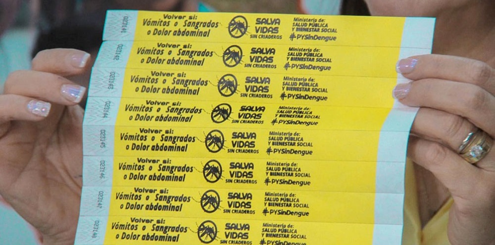 Desde hoy, se implementó la colocación de pulseras como una nueva estrategia para que una persona con síntomas de la enfermedad tenga a mano cuáles son los signos ante los cuales debe volver al servicio de salud y que allí su atención sea prioritaria. En hospitales de Asunción y Central, zonas donde se concentra la epidemia.