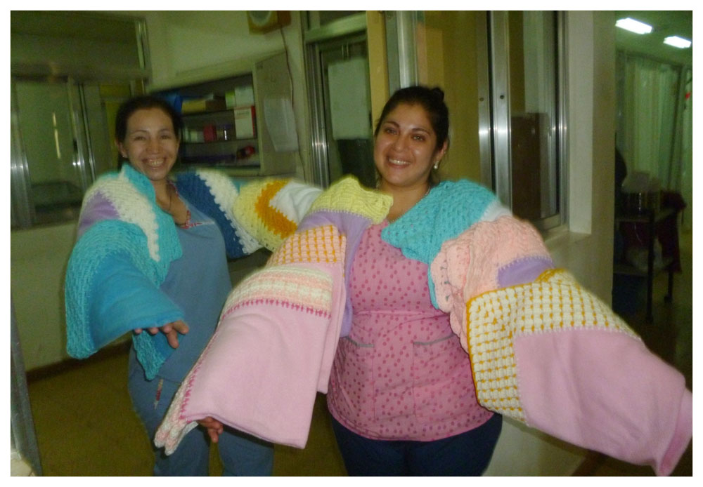 Acá no sólo tejemos es, en definitiva, nuestro cable a tierra, es nuestro alivio, nuestro llanto, nuestras risas, escucharnos y ver lo que podemos solucionar”, contó. No se animaba a volver al hospital “por todo lo que me pasó pero un buen día me llevaron porque tenía que superarlo. Salí llorando a chorros pero me daba esa paz, tranquilidad, porque entrábamos a cada habitación y encontrábamos seis, siete, ocho camas, algunas compartidas entre dos mamás, dependía de la cantidad de nacimientos. Al ver todo eso, al dejarle las mantitas y al ver las caritas de alegría, que cuando te retirabas te decían ¡gracias! de una manera tan especial, que les salía del alma. Y las bendiciones que recibíamos, no podía pedir más”.