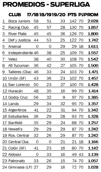 Gimnasia suma en tres campañas 72 puntos y Patronato 74, por lo tanto un triunfo del equipo que dirige Diego Armando Maradona lo sacaría del último puesto de la tabla del descenso.