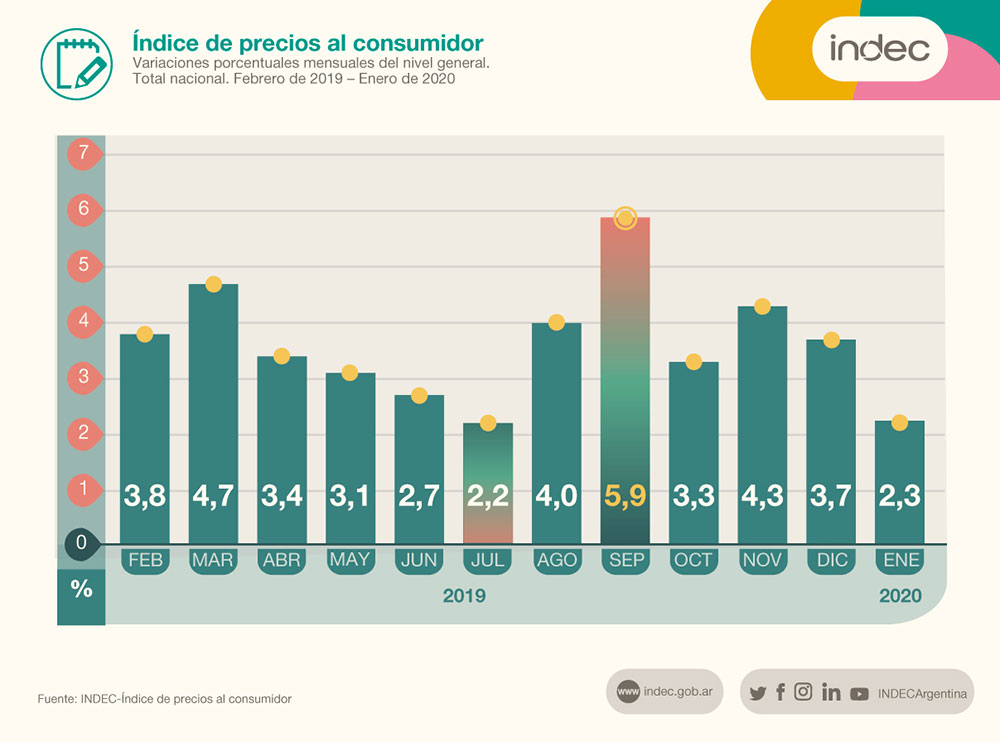 La inflación tuvo una desaceleración en enero y se ubicó en el 2,3%, informó esta tarde el Instituto Nacional de Estadística y Censos (INDEC). En diciembre pasado, la suba generalizada de precios se había ubicado en el 3,7%.