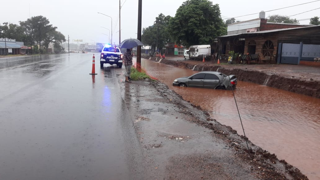 Un automóvil despistó en una banquina en el barrio Miguel Lanús, en la intersección de ruta 12 y calle 10 de Junio, en Posadas.