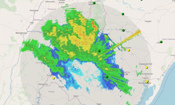 Sobre gran parte del área de cobertura se producen lluvias y tormentas de variada intensidad. Se prevé que las mismas se extiendan al resto de la zona en las próximas horas.