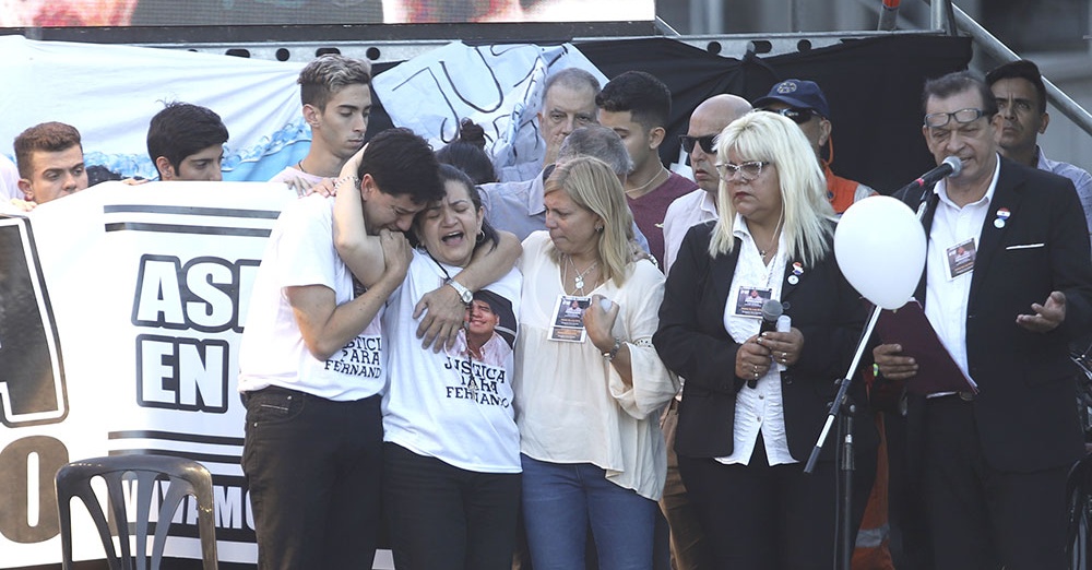 “No estamos bien todavía, pero venimos para que se haga justicia por Fernando. Mi hijo es una víctima colateral de este drama, pero una víctima muy chiquitita, porque al que mataron fue a Fernando. Mi hijo quería venir, pero le dije que no. Espero que con esto cambie la sociedad”, dijo.