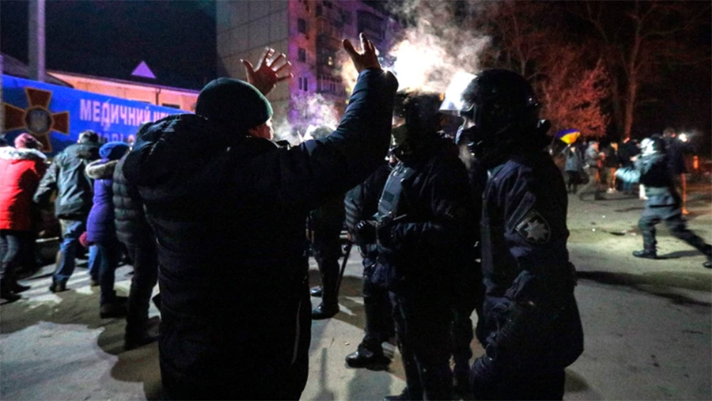 El intento de Ucrania de poner en cuarentena a más de 70 personas desalojadas de China por el nuevo brote viral, se sumergió en el caos este jueves cuando residentes locales que se opusieron a la medida arrojaron rocas a los evacuados, y protagonizando choques violentos con la policía.
