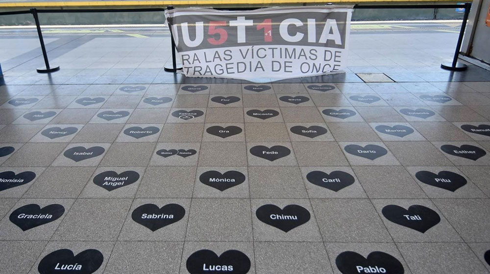 Con carteles con las fotos de sus seres queridos y la palabra “Justicia”, los familiares escucharon los nombres de las víctimas, en un clima de congoja y pedidos de “memoria, verdad y justicia” a metros de donde ocurrió el siniestro.