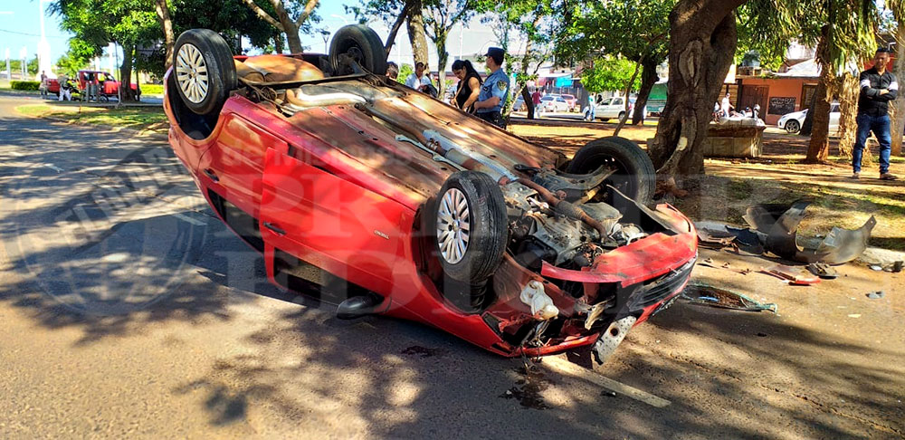 Por causas que se tratan de establecer ambos rodados colisionaron y a raíz del impacto el Volskwagen terminó volcando.