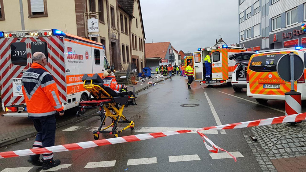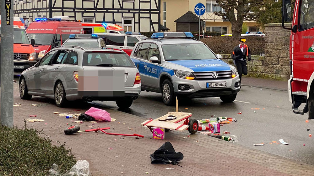 El caso fue reportado en la localidad de Volkmarsen, en el estado federado de Hesse, y el conductor del automóvil fue detenido por las autoridades, que de inmediato dijeron no estar en condiciones de determinar si se trató de un accidente o de una agresión.