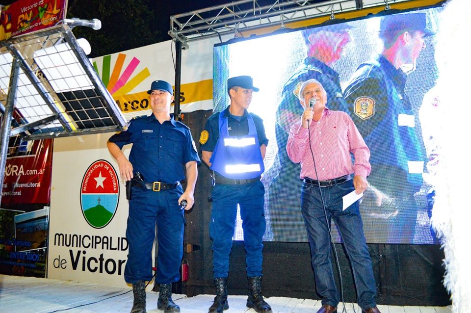 Por su acción, el intendente de Victoria, Domingo Maiocco, le entregó al cierre de los carnavales una distinción por “el valor humano y la madera de las que están forjadas nuestras fuerzas en Victoria, ocupándose y preocupándose por el bienestar y cuidado de cada vecino victoriense, como así también de aquellos que deciden visitarnos”.