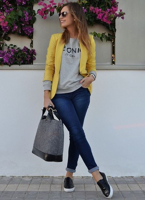 Blazer + Remera de Algodón + Jeans Prolijos + Zapatos con Taco