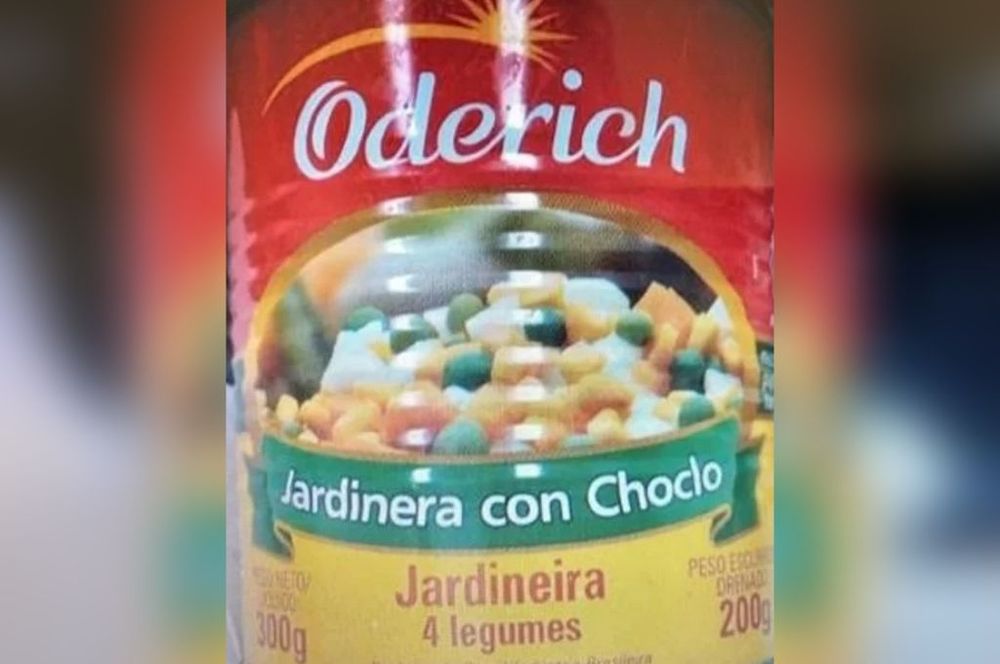 Se trata de las latas “Mezcla de choclo, papas, arvejas y zanahorias en conserva”, con nombre de fantasía “Jardinera con choclo” de marca “Oderich“. RNPA: 0270015. RNE: 00000728. Con vencimiento: 26/09/2020″ y específicamente de los lotes: NVCI PJA 1944260917, NVCI PJA 1946260917, NVCI PJA 1947260917, NVCI PJA 1948260917 y NVCI PJA 1949260917.