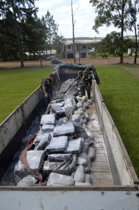 El perro indicó la presunción que, debajo de las lonas atadas y precintadas, se escondía droga. La autorización para demorar el transporte y requisarlo no tardó desde el Juzgado Federal de Eldorado y el hallazgo se confirmó: 167 bultos plásticos con ladrillos de cannabis sativa, un total de 2.835,880 kilogramos.