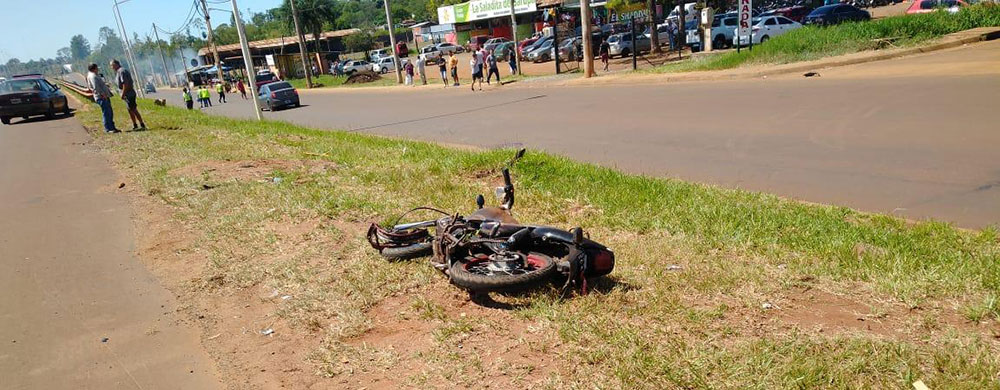 Según las primeras averiguaciones, una camioneta Ford F-100 conducida por un menor de 13 años y como acompañante su padre Jorge M. de 56, se encontraba estacionada frente a una fábrica y fue impactada en el lateral izquierdo por una motocicleta Honda 150cc conducida por Yonathan García de 20, quien circulaba a gran velocidad en sentido Posadas- Garupá e intentó ingresar por la colectora.
