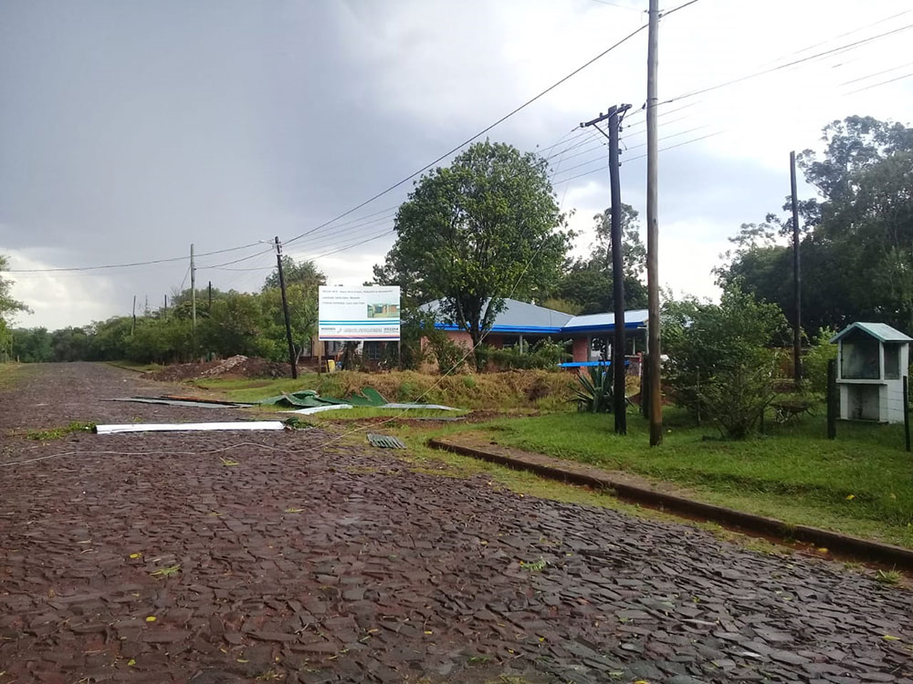 Granizo, lluvia intensa y fuertes ráfagas viento, por corto tiempo ocasionaron desastre en la zona, lo mismo habría pasado en Cerro Corá, donde unas tres viviendas fueron afectadas por el viento y tumbó algunos postes de energía dejando a la localidad sin luz. La Policía de Misiones confirmó que hay varias viviendas afectadas, por ahora de tres familias.
