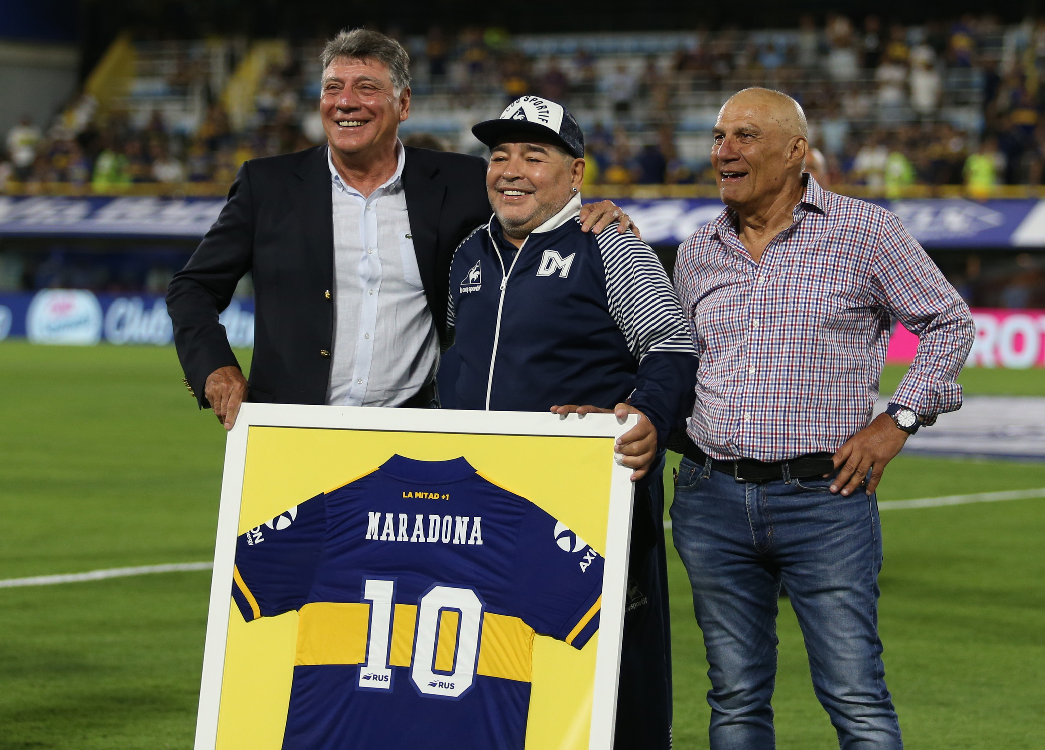 Sus ex compañeros en Boca, Miguel Ángel Brindisi y Omar Perotti le entregaron una plaqueta a Pelusa.
